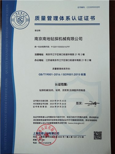 我公司注冊商標“南探牌”,經營范圍:鉆探機械(1、鉆機系列:鉆探機、鉆探設備、探礦設備、地質鉆探設備、勘探設備、打井設備、注漿設備、堵漏設備,自行走履帶鉆探設備各類鉆機,背包鉆機、輕便鉆機、小型鉆機、中型鉆機、大型鉆機、地質鉆機、勘探鉆機、巖心鉆機、巖芯鉆機、工勘鉆機、工程勘察鉆機、探礦鉆機、超前地質鉆機、取芯鉆機、取樣鉆機、水井鉆機、打井鉆機、地熱鉆機、灌漿鉆機、引孔鉆機、淺孔鉆機、中深孔鉆機、深孔鉆機、水平鉆機、隧道鉆機、礦山坑道鉆機、錨固鉆機、潛孔鉆機、全液壓鉆機、履帶鉆機、多功能鉆機、拖掛鉆機、輪式鉆機、兩輪拖掛鉆機、四輪拖掛鉆機、履帶式地質鉆機,2、配套鉆機底座及鉆塔:兩輪、四輪拖掛底座及三角架鉆塔、四角架鉆塔、全液壓鉆塔,自行走履帶底盤及鉆塔,井字型鉆塔,A型鉆塔;3、泥漿泵、注漿泵、灌漿泵系列:泥漿泵、注漿泵、注漿機、灌漿泵、灌漿機、水泥砂漿泵等注漿設備、灌漿設備及配套灌漿攪拌機、泥漿攪拌機等和配套);齊全的鉆探工具系列(鉆桿、接頭、巖心管、套管、合金鉆頭、金剛石鉆頭、復合片鉆頭、水龍頭、鉆探提引器具、輕便觸探錘、動力觸探錘、硬土取土器、軟土取土器、麻花鉆螺旋鉆提土鉆、繩索取芯鉆具、雙管鉆具等);靜力觸探機、靜力觸探儀系列(3T手搖靜力觸探、5T-8T-10T-15T-20T-25T液壓靜力觸探機靜探儀、分體式、四輪拖掛、履帶靜探車、履帶式靜力觸探車、履帶靜力觸探機、履帶靜力觸探儀);錨固機具系列(錨桿提土鉆、地質鉆桿、潛孔鉆頭);注漿機、灌漿機、水利機械及設備(水利大壩灌漿注漿鉆孔機、灌漿注漿泵、注漿管、注漿頭、封孔器塞、注漿塞)及通用機械設備、鉆機配件、泥漿泵配件的設計、制造、銷售、修理和服務。