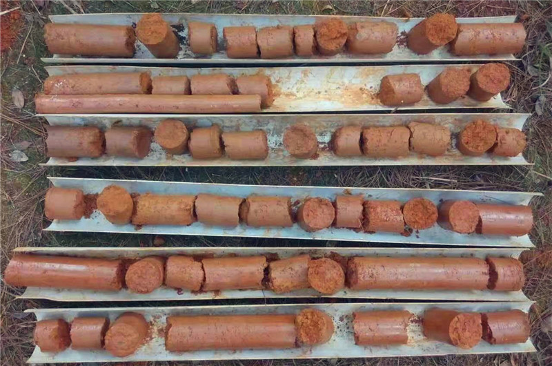 鉆進(jìn)過(guò)程中提升和給進(jìn)是依靠手搖卷?yè)P(yáng)裝置配套提引器或加壓手輪通過(guò)鏈輪鏈條來(lái)完成,大大提高了鉆機(jī)提升和加壓力。鉆進(jìn)過(guò)程中,利用泥漿泵冷卻回轉(zhuǎn)器和鉆頭,并攜帶土巖屑返回地表。隨著鉆具向地下延伸,所需要的土巖樣不斷進(jìn)入到巖心管內(nèi),當(dāng)土巖樣達(dá)到預(yù)定深度后,便可以將鉆桿取出,實(shí)現(xiàn)了單回次取樣作業(yè)。重復(fù)以上步驟,直至全孔取樣完成。